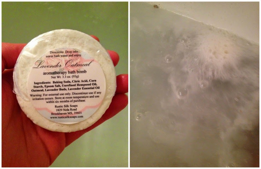 One thing I discovered, however, was that the remnants of the pretty pale purple-colored Lavender Mint bomb rather adeptly highlighted a heretofore-unseen/unacknowledged filth ring in my bathtub. Oh well, it gave me an excuse to clean the tub.